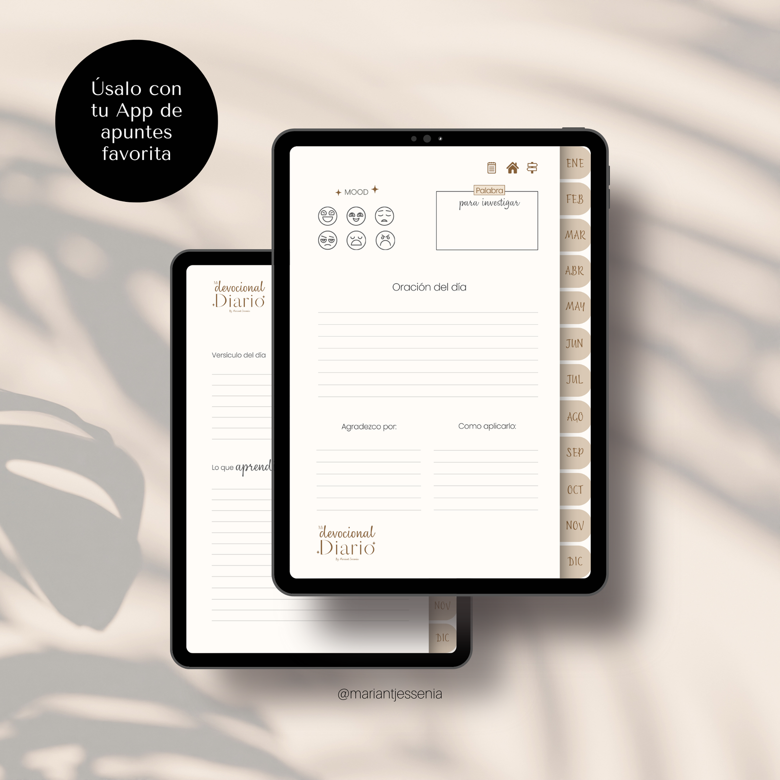 Agenda Devocional Editable, diseñada para ser el complemento ideal en tu día a día espiritual. Compatible con cualquier app de notas en tu iPad, podrás plasmar tus pensamientos, versículos que te inspiren, y mucho más. Aprovecha una plataforma fácil de usar que transforma tu rutina devocional en una experiencia enriquecedora y personal.